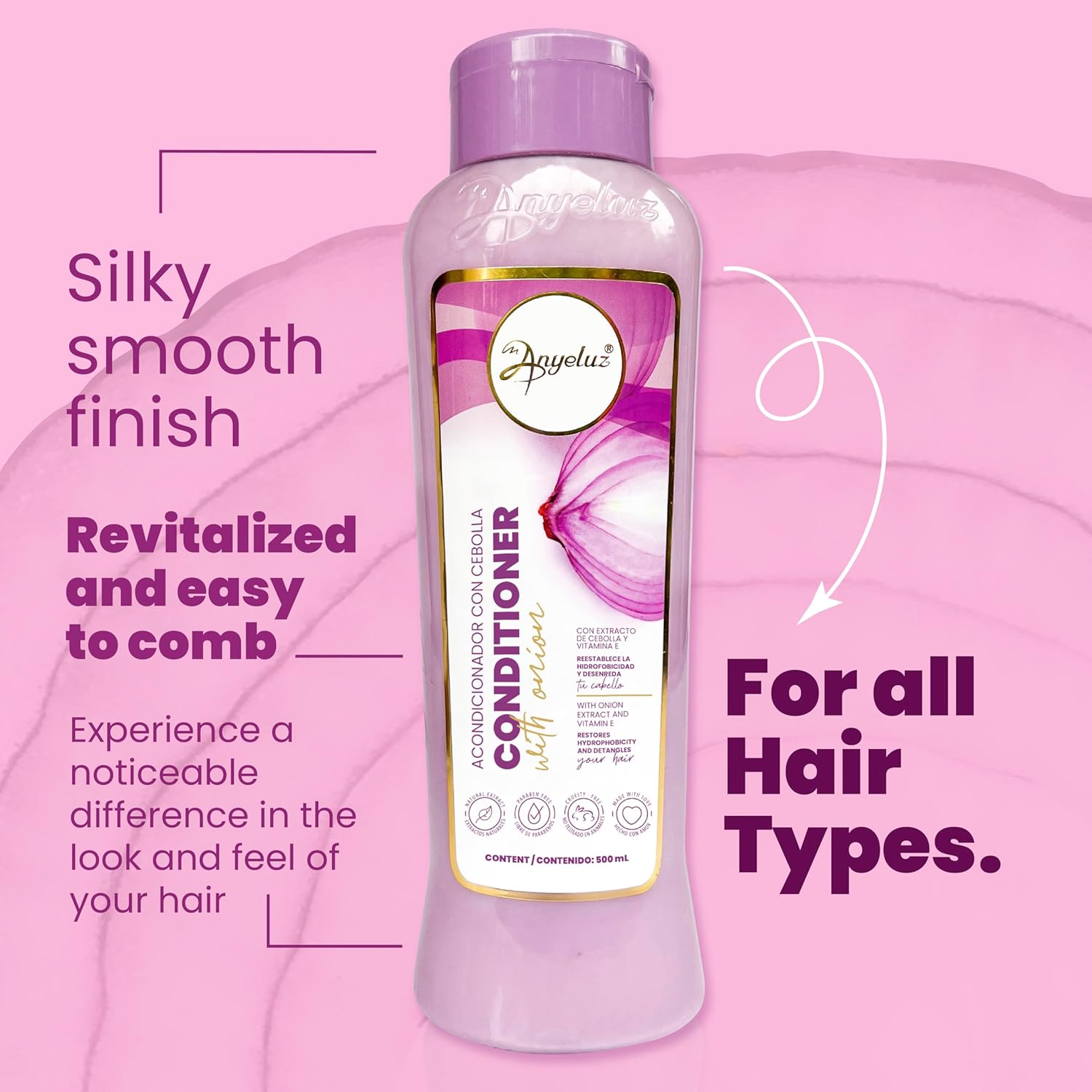 VISIBLE AND TANGIBLE RESULTS: Anyeluz Onion Conditioner provides visible and tangible results from the first use. Experience revitalized, silky and easier to style hair, noticing the difference in the appearance and texture of your hair.