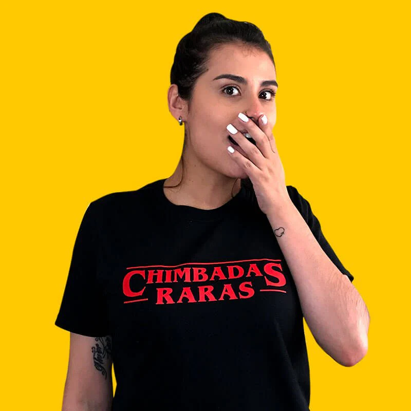 Stranger Things T-Shirt / Black, inspired by the series and translated with the best Colombian twist, “Chimbadas Raras.” You’ll carry our identity and culture wherever you go. This design is ideal for gifting and perfect to complement your outfit. All our products are inspired by and designed from our Colombian culture, the best. With this Colombian gift, you’ll carry our identity wherever you go, an ideal design for gifting.